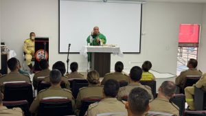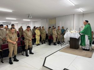 A celebração eucarística foi presidida pelo capelão militar, padre Cícero Salvador, que conduziu a liturgia com mensagens voltadas à importância da fé, da esperança e da solidariedade no cotidiano profissional, especialmente diante dos desafios enfrentados diariamente pelos bombeiros militares no cumprimento de sua missão constitucional.