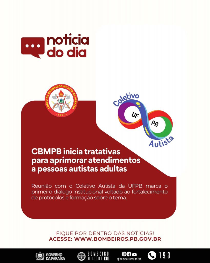 O Corpo de Bombeiros Militar da Paraíba (CBMPB) realizou uma videoconferência com a fundadora do Coletivo Autista da Universidade Federal da Paraíba (CAU/UFPB), professora doutora Caroline Martins, marcando o primeiro contato institucional para diálogo sobre o desenvolvimento de possíveis ações conjuntas voltadas à promoção da segurança, da saúde e da inclusão de pessoas autistas no estado. A iniciativa tem como foco a ampliação do entendimento sobre as características de pessoas autistas adultas e até idosas, especialmente no contexto de atendimentos emergenciais.